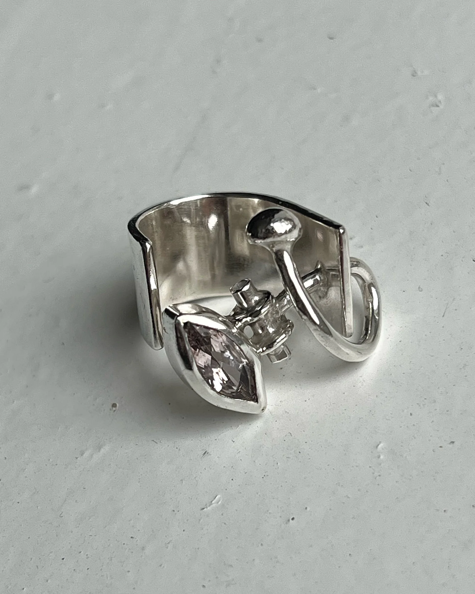 STERLING SILVER RING WITH MARQUISE CUT MORGANITE