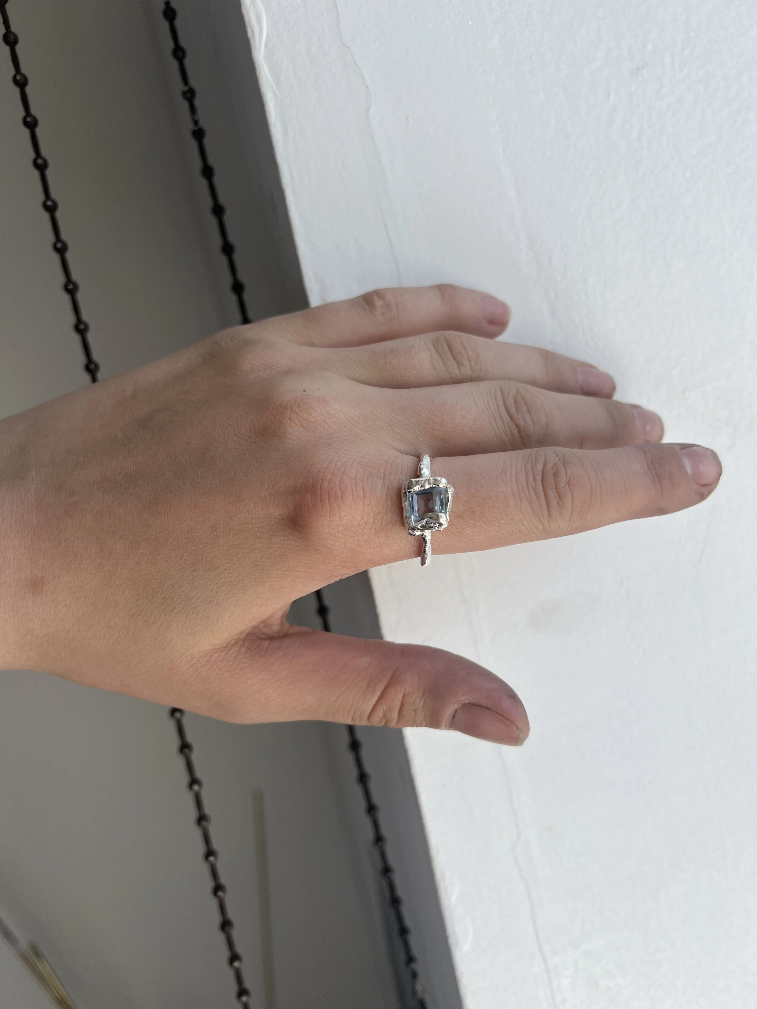 CUSTOMER BROUGHT HER STONES AND HAD A VISION OF SILVER HUGGING THESE STONES. AMETHYST, GARNET AND AQUAMARINE SPENT SOME TIME AT MY STUDIO UNTIL I GOT THE VISION OF FINAL RESULT.