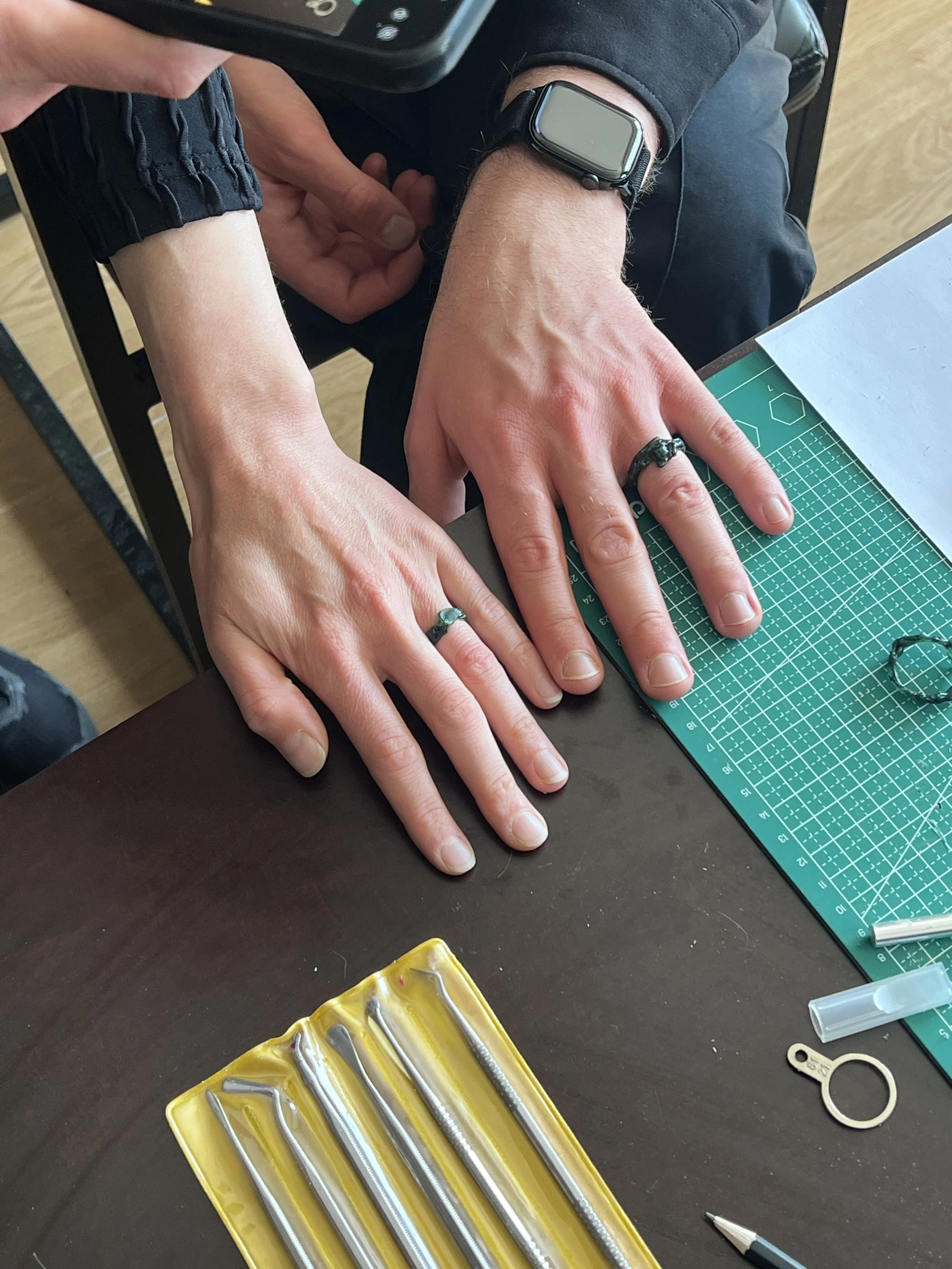 Kristina & Kert came to my studio to make their own wedding rings inspired by my drip ring with each other’s finger print as an embellishment. 14K gold helped the jewels to become solid beauties thanks to heirloom jewels and are now adorning the newlyweds.