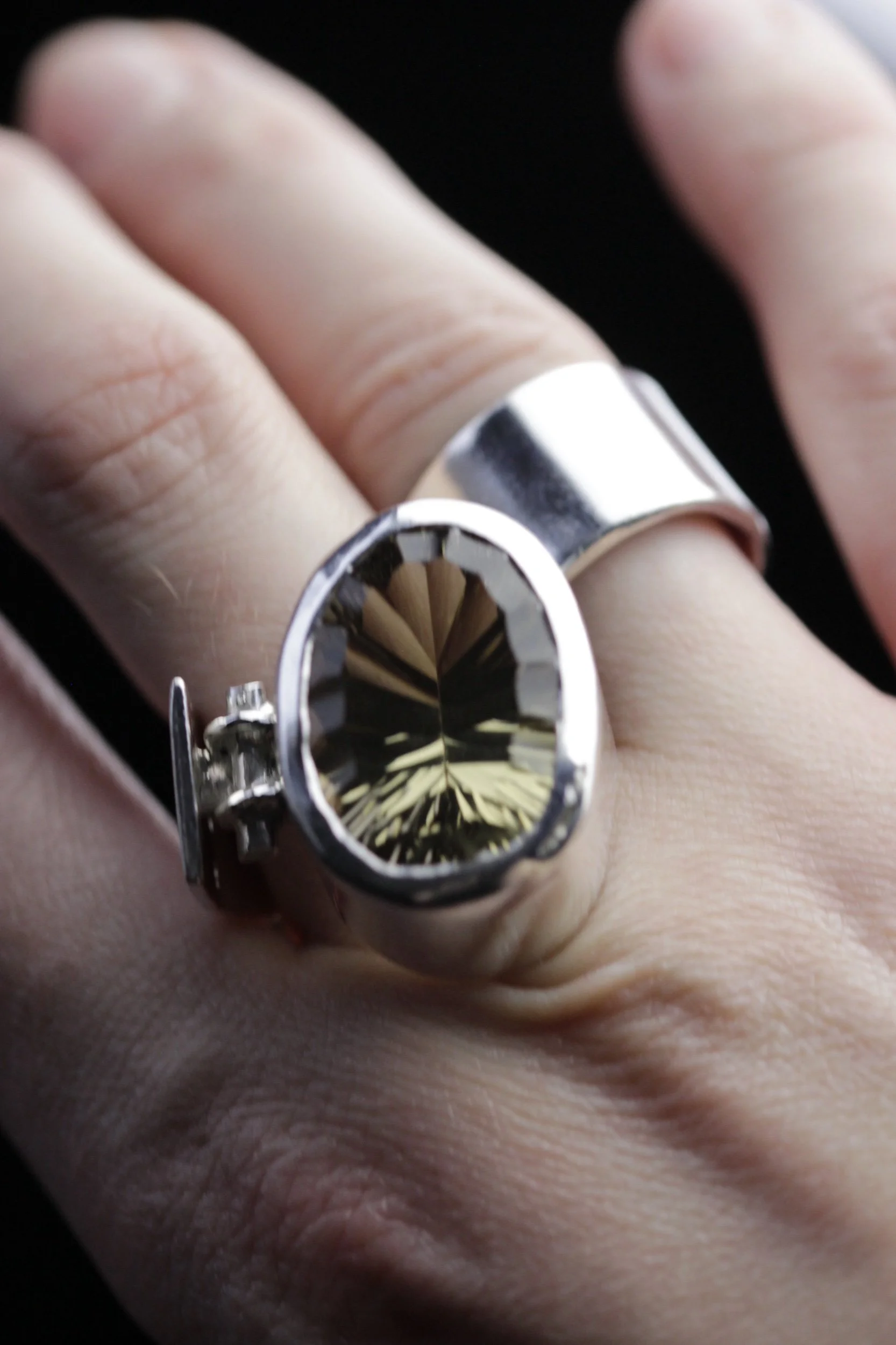 925 STERLING SILVER RING WITH CITRINE ROR 2 FINGERS.